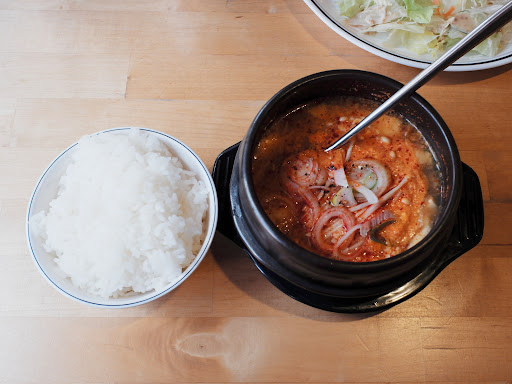更に次の次の日、またまた来店です。今日はスン豆腐チゲのランチセットです。辛味豆腐スープでしょうか、...