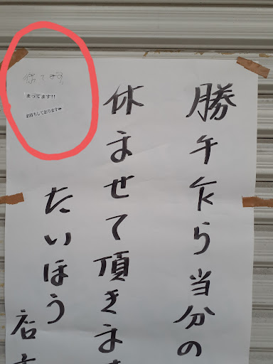2024年3/16更新。 相変わらず休業のままです。 マスター手書きのポスターがどんどん寄せ書き状態に。(笑)