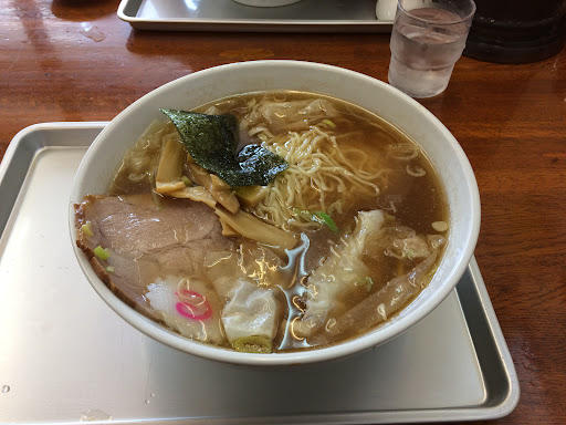 醤油煮干のスープに、草村商店のやわらかい中細麺がよく合います。スープは本家に比べるとライトであぶら少なめですかね。麺の茹で加減は柔らかめで、家系ではいつも固め注文なのですが、やはり大勝軒はこうでなければ。チャーシューも美味い、定番のメンマ、ナルト、少量のねぎ、のり、柚子、そしてとろ~りワンタン。半分食べ終わると、生卵につけて頂きますp(^-^)q ...