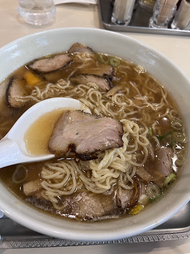Scalding hot ramen, huge portions of shoyu broth, noodles, and pork. Totally worth it, love this place. Very old school — not much on the menu. It doesn’t look like they have great English support from the outside but everyone in there spoke to me in English and ordering was fine. During busy times they’ll come outside and ask you your order in advance to speed things up. Not great for groups, but I went there with two cousins and we had a great time. Highly recommend!!! My favorite ramen in Tokyo.
