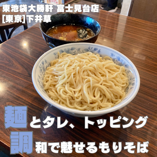 東池袋大勝軒 富士見台店@ 東京都練馬区南田中1-1-15 どうも、さぴおです ✍️もりチャーシュー 麺大盛 ______________ 🍥ポイント ✅麺、つけダレ、トッピング 全てが調和した東池系のマスターピース! ✅気を衒うことのない実直な大勝軒系もりそば ✅RDBでの低評価が信じられません  ̄ ̄ ̄ ̄ ̄ ̄ ̄ ̄ ̄ ̄ ̄ ̄ ̄ ̄ [点数] 87点 ☆4.2 [アクセス] 『富士見台駅』(863m) [休日] 月 第1 第3 第5火 [注文メニュー] もりチャーシュー(麺大盛)1220円 [並び・システム] 並びなし・口頭注文後会計 [食材] 動物出汁、魚介出汁、甘酢、バラチャーシュー、メンマ、一味、中華麺 [味] 甘酢