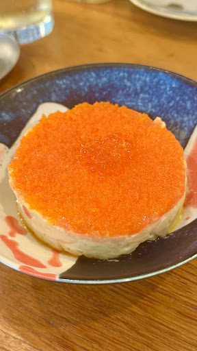 ■お通し 550円 2 お通しの雲丹たまごは、半熟卵の上にたっぷりの濃厚な雲丹。黄身のなめらかさと雲丹の旨みがとろけ合い、わさびの香りが微妙なアクセントに!お通しとは思えない贅沢なひと品です✨