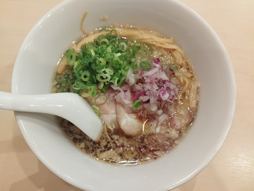 ラーメン全体の見た目は、新小岩 自家製麺 啜乱会?秋葉原 饗 くろ㐂?塩生姜らー麺専門店 MANNISH?違うなぁ…赤玉ねぎがあるから、市川 らぁ麺...