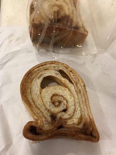 【シナモンロック】 外は軽いサクッとしたデニッシュ生地のような食感で、反面、中は生地のふわふわ・もちもち感が楽しいパンでした。 バターやシナモンの味わいがとても良く、温め直さなくても充分に美味しかったです。