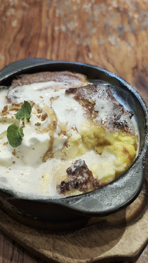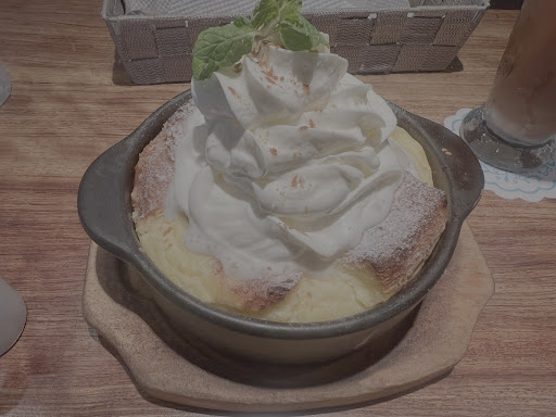 Came here during lunch hour and was lucky to get a seat before it got busy. Ordered the stone oven baked french toast set with an iced coffee. It will take about 30 minutes to bake and the staff will check if you can wait when confirming your order which was nice. The french toast was served piping hot and the fresh cream on top melts fast so recommend requesting the cream on the side. The top layer was slightly crisp and inside was very soft and moist with an eggy taste. The side of maple syrup adds a rich sweetness which goes well with the french toast. As for the iced coffee, it has a deep roast flavor and a little acidic which was tasty and refreshing. Overall the french toast was pretty good and the portion was big at a reasonable price but got a little flavor fatigue...