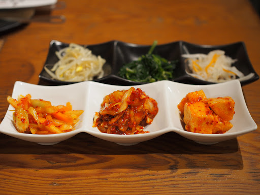 ●キムチ盛り合わせ 480円 白菜キムチやセロリキムチなどで、 辛すぎず日本人好みの程よい酸味でおいしい。 海鮮の味もして、深みのある味わいでした。