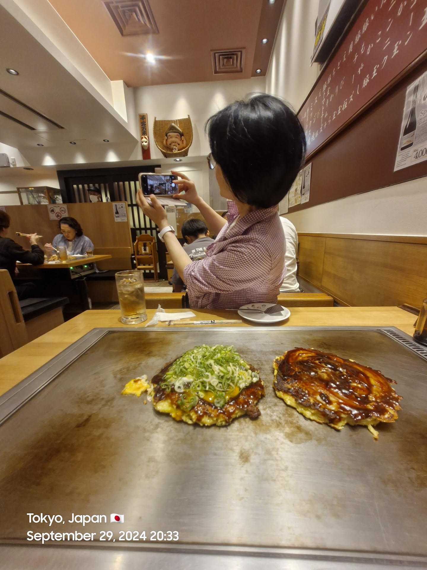 Read moreMy brother and I came here last night (Monday around 9pm). It was busy, but the wait time wasn't long for us. There's a queuing area with a line of chairs to the right side of the restaurant, and a staff member came by to let us view the menus when we were close to being seated. They have English menus available, and after you're taken to your table, you can put your bags and jackets in the compartment under the seats. (Definitely do this or your stuff will smell like food.) We ended up ordering a monjayaki, yakisoba, an okonomiyaki, and some drinks. We were able to finish all our food between the two of us, but I was extremely stuffed. The restaurant closed at 11pm: last order for food was 10pm, and last order for drinks was 10:30pm. You would need to go to the cashier at the front of the restaurant to pay the bill that the staff leaves at your table.