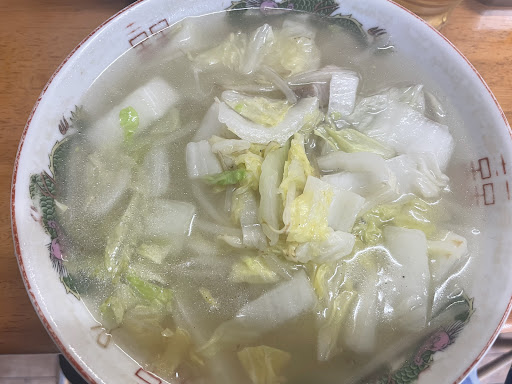 東中神駅、初めて降り立ちました。 駅からGoogleマップ頼りに向かってると「えっ!?ここ大丈夫?人んチじゃない?」って路地を通過して到着。 まだ客足はまばらですが、店主さん、鍋を振ってる感じなので、黙って待ちます。 メニューはシンプルに“タンメン”“ギョーザ”“ビール”と潔いラインナップなので、まぁ、全部頼みます。 会計は注文時に前金。 チビチビ呑りながら待ってますが、タンメン出て来る前に瓶の中が心細くなったので、 出て来ると同時にビール追加。 さて、先ずはスープ。 うん、それほど塩味も強くなく、サッパリ。 レンゲ調味で胡椒を入れると塩味が立って、美味しい。 自家製と思しき辣油は、、、うん、合う合う。 麺は細麺ストレートで固めの仕上がり。 タンメンの野菜は白菜メインでもやし少々と豚肉の細切りがまばらに。 間も無くギョーザも到着して、さて、1人0次会です。 ギョーザは小ぶりが5個、一口サイズ。 美味し! 待ってる間にもお客さん、次々入店。 常連さんは「ニコニコ!」でタンギョー2人前で通るようです。 カウンター10席ほどの地元密着店ですが、とても美味しく楽しめました。 ご馳走様でした〜🎵