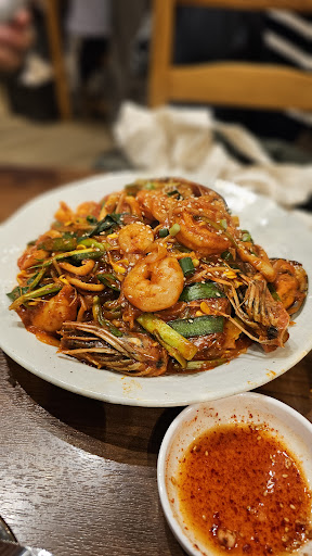 We ordered a big plate of spicy chicken, cheese and spicy pork, tofu stew and some rice. It of course came with some ban chan, which is always welcome to have with spicy chicken and pork.