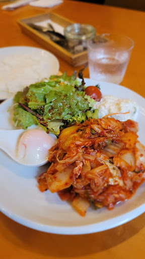 Read more休日のランチに利用させて頂きました。 ランチセットはメイン、サラダ、ドリンクから選択する形式。 メインは10種類から選ぶことができ、今回は大麦豚の厚切りロースの特製ポークソテー。 サラダはオリジナルサラダ、ドリンクはミルクティー(甘平とどら焼き乗せ)を注文。 ポークソテーは甘みのあるオニオンソースにジューシーで柔らかいお肉でクセになる味。 オリジナルサラダはとにかく大盛りでドレッシングがとても美味しい。 ドリンクはミルクティーの上にどら焼きやアイスが乗っていて、ドリンクの上にあると思えないほどのインパクトで面白い。 スタッフさんもオーナーさんも気さくな方で楽しく会話しながら時間を過ごせるのがとても良いです。 次回はディナー...