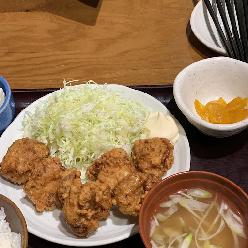 Read moreこの日、昼定食の看板を見つけたので4人で入りました。ご覧の唐揚げ定食ですがメニューでは目玉焼き載せとありましたが、そのままで出てきたので指摘すると別皿で提供されました。
