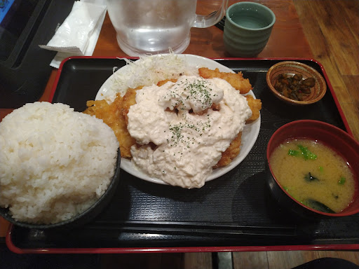 今日は、八王子にランチを食べにやって来ました!緊急事態宣言が明けて、八王子駅や商店街は、盛況です!いつもの八王子が戻って来ました!お昼時になり、歩いて京王八王子駅を目指し、歩いて5分程で目的地に到着です!今回は、てけてけさんにランチを食べに来ました!何でも、ランチ時のご飯の量が選べて、爆盛なる盛りがあると聞き今回お邪魔しました!外の看板にはお得なランチメニューが紹介されています!店内に入り、女性の店員さんに席を案内してもらい、お一人様用のテーブル席に着席です!居酒屋さんのランチを利用するのは、初めてでワクワクします!注文は、タッチパネルタイプで各席にパネルが置かれています!ランチの部で選び、その中から1番お得感あるチキン南蛮定食のご飯爆盛を選択し、送信します!以外と店内は、空いていて、落ち着いてランチが出来そうです!席につき水を飲んで、食べる準備に入ります!待つ事、7分程でお待ちかねの、チキン南蛮定食のご飯爆盛が登場です!見事ですね〜!茶碗にマンガ日本昔話に出てくる様な、漫画盛りのご飯が堂々と風格あるただ住まいで鎮座しています!ご飯を見つめ、テンションが上がって来た所で、いただきます! チキン南蛮は、サクサクしていて、マヨネーズ味の強いタルタルソースがかかっています!タルタルソースの具材は、玉ねぎと乾燥パセリですが、マヨネーズの脂ぽさは、感じさせません!鶏肉も柔らかくボリュームがあってお得感は、半端ないですね!アゲアゲな勢いでご飯爆盛を喰らう!タルタルソースの爽やかな酸味が飯に合いますね!正直に美味しいと思えます!この質と量で690円は、格安です!美味いチキン南蛮のお陰で、ご飯爆盛は、中盛から小盛りへと姿を変えて、最後は、漬物と一緒に完食です!! いやー!本当に美味しかったです!安月給の自分には、嬉しいランチメニューです!居酒屋さんのランチメニューは、侮れませね!実に満足です!最後に会計を済ませて退店です!会計時は、席にある長方形の黒い棒のような物をレジに持って行くと会計が出来ます!とりあえず黒い棒です!皆様も、コチラのてけてけさんでランチ限定のご飯爆盛に挑戦してみてはいかがですか?お得感は、マックスです!初めて居酒屋さんで食べた、ランチは、お得感溢れる美味しいランチでした!また、食べに行きます!そして、美味しいランチ...
