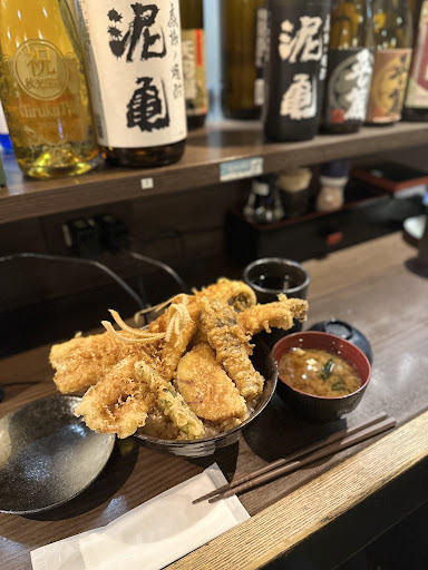 The tempura here is fantastic and can be creative. It is a little bit lighter and less sweet than the traditional Asakusa tempura that often uses a heavier tasting sesame oil. I usually have the tendon special. See photos. I also recommend the kakiage which can come with a salsa-like sauce. Really good and different. The atmosphere is very plain, close by is another tempura place with a small but nice Japanese garden. Also, surprisingly for Japan, the service was a bit rude. A waitress was quite impolite. Anyway, come for the food.