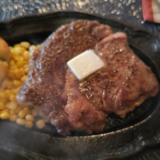 まずはステーキを出されたまま何もつけずにパクり?うまい❗️旨すぎるw😋濃いめの塩コショウにバターと肉汁の混ざりあった味付けは抜群に旨い。ジュウジュウ鉄板系ステーキの中で過去一好みかもしれません。これは何も味変せずに最後までペロリです😋バターと塩コショウ香る肉を一口パクり😋赤ワインを一口ゴクリ🍷ガン極りです。あっという間に完食でした。ジュウジュウ系のステーキでこのコスパでこのレベルは後々ないのではないでしょうか。口コミ書きながらよだれ(´ρ`)が出てくるほどです。