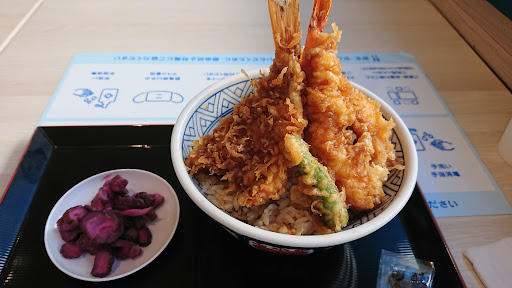 Ordered the regular tendon for lunch. Only the squid and the egg were fried well in my opinion. Everything else was a bit soggy and not because of the sauce, and the two shrimp were a bit overcooked. The sauce was at mid to bottom of the bowl only in the rice... how? I don’t know. I honestly think the udon place across the hall has better fried food in general. It was also a bit expensive. Mine was ¥990 including tax.