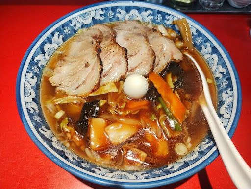 1番人気の天鳳ラーメンにチャーシューをトッピングしていただきました。 中華醤油ラーメンの上に野菜たくさんの味噌味の餡かけがかかってきます。餡かけは見た目ほど味が濃くなくスープの味を邪魔することなく、白菜がシャキシャキで最後まで美味しくいただきました。 提供スピードがとても早くて、出発の前のちょっとした時間でも利用できると思います。 量が多いので、普段ラーメン中盛を食べる私でもお腹いっぱいでした。少食の方はできるかわりませんが、麺少なめとかでも良いかもです。