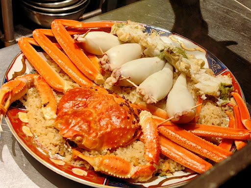 そして、 蟹やらヤリイカのおこわ(`・ω・´) おこわは、台湾では重要な宴会料理だそうである。 届きたてのカニと、 子持ちヤリイカの魚のすり身の詰め物。 おこわ自体にも桜エビやキノコが入っており、 蟹やイカ、エビの海鮮の香りにしいたけの香り(゚д゚)ウマー