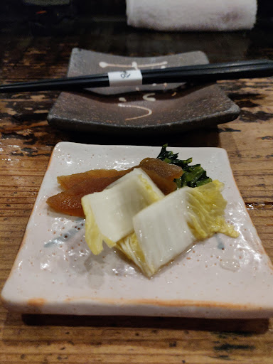 We enjoyed many appetizers and skewers. The cucumbers with minced chicken dips were quite nice! Of the appetizers, we particularly enjoyed the pickled mackerel, the yuzu jellyfish, and the soft liver. The marinated tomatoes and the salads had light, subtle flavors.