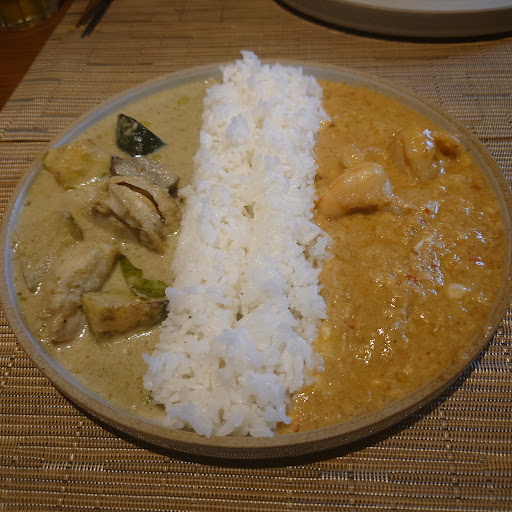 ◯グリーンカレー おそらく注文を受けてから炊いてくれたと思われる土鍋のジャスミンライスで頂く。ココナッツの芳醇な香りと甘みとカレーの辛さがじんわりミックスして、こちらも即完食。