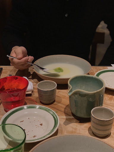 Final evaluation, worth a try, and there is a small à la carte menu, though it’s prix fixe for ¥8000. A couple glasses of wine and an after dinner beverage comes to around...