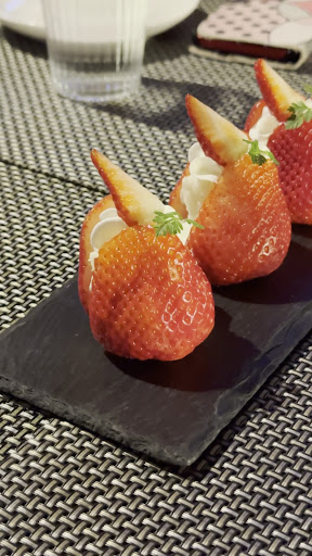 パフェだけではなく、 コースのお料理としていただき まずはじめに登場したのは 栃木県の大きなイチゴを使った 逆イチゴサンド。