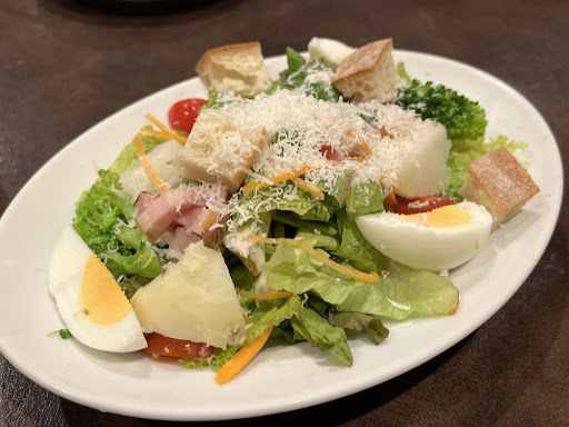 さらに「ごろごろ野菜のシーザーサラダ」も見逃せない。カリカリのベーコン、大きくカットされたじゃがいも、新鮮な野菜がたっぷり盛り込まれ、濃厚なチーズのドレッシングが全体をまとめている。軽い口当たりながらボリュームがあり、これだけでも満足感が得られる。そして、「ポテトフライ」もまた外せない一品だ。外はパリッと揚がり、中はホクホク。振りかけられたパセリがほんのり香り、シンプルながら手が止まらなくなる味わいだ。