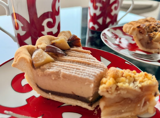 まず、モンブランパイ。見た目からして豪華で、モンブランクリームがたっぷり盛られていてインパクト抜群。甘すぎないクリームとサクサクのパイ生地が絶妙にマッチしていて、クリーミーながら軽やかな味わい。栗の風味がしっかり感じられて、秋らしさも満喫できました。