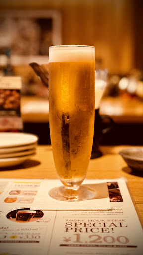 It was Saturday around 1.30pm, we didn’t make a reservation, but it wasn’t too many people, went we went in, the staff asked us to find a table we like to sit ourselves. Their lunch set and happy hour deal are really good. My husband ordered a big size “Today’s beer”, and the “Yonezawa beef classic cheese burger with coleslaw”. I ordered the “US ribeye roll steak”, also from a la cart menu the “BBQ buffalo wings”.
