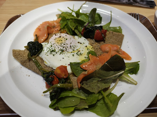 Food: cafe was comfortable and you can work from there. I loved that the draft beer was premium Malts, which is my favorite. The きゅうり浅漬けwas delicious! The fried chicken salad set was sad - only 4 tiny pieces of chicken for 1300 yen. It is very noisy though, because the floors above are not sound proof and you can hear children in the sports arena. Not somewhere to relax in a quiet place.