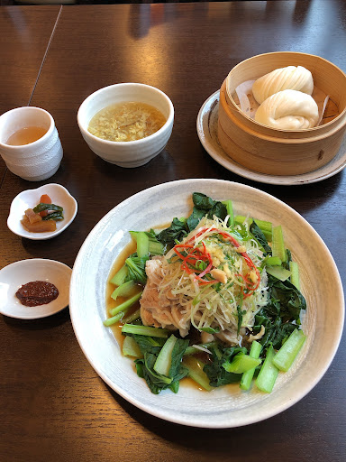 思わず目を見開くほど美味しい!と思ったランチは、久しぶりだ。 不定休でなかなかタイミングが合わず、やっと訪問すると意外や経営は若いご夫婦。奥様の応対が優しく丁寧で、一気に印象が良くなった。 明るい店内を見渡すと、店じゅうが細やかな心遣いで溢れていることに気付く。ポットの熱いジャスミンティ、椅子にはブランケット、厚手の大きなお手拭き、可愛らしい飾りや手描きのメッセージなど。「おうちに飾りませんか」と趣のある紹興酒の空き壺も置いてあり、なんだか微笑ましい。 ランチは週替わり3種類、坦々麺、鶏そばの計5種類から選べる。週替わりから「蒸し鶏の焦がし醤油かけ」を選択し、ライスを花巻(蒸しパン)に変更してみた。 最初はシャキッと冷えたサラダ。濃厚なオニオンドレッシングが良い味。 次にスープを一口飲んで、ぶっ飛んだ。具は卵と牛蒡と…?何の味か分からないがとても美味い。よくあるおざなりの卵スープなどとは全く違う。 そしてメインの蒸し鶏は、醤油ダレの味が素晴らしく、肉も柔らかくボリュームたっぷり。写真では分かりにくいが高く美しく盛られ、青梗菜や生姜などとのバランスも良い。添えられた豆板醤をつけてもまた良い。 最後の花巻はなんと杏仁の香りで、熱々・モチモチ・ふかふか。鶏と青菜を挟んで食べても美味い。 メニューをよく見ると、ハーフセット(メインを減らして小皿とデザート付き)がお勧めだそうで、他の客はみんなそうしていた。本日の小皿の水餃子も美味しそう。さらに小皿は単品で8種類から追加注文もできるようだ。 こちらに来たら、店内もメニューも端まで良く見て、ご夫婦のもてなしを堪能されることをお勧めする。 なお、近隣コインパーキングの料金サービスは、会計¥2,000以上の1グループ1台に限り、ランチタイム¥200、ディナータイム¥400(...