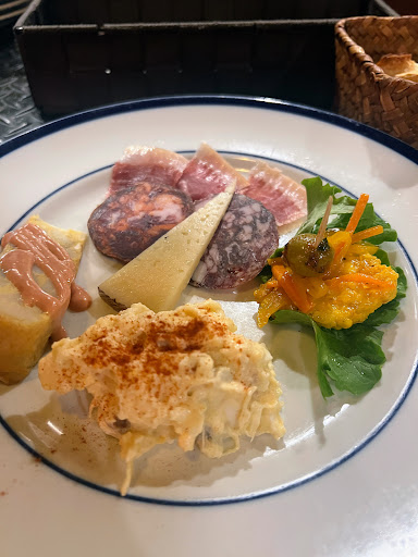 今回はアラカルトで。 スペイン風ポテトオムレツ700円 イカのフリット700円 生ハム入りコロッケ1ピース300円 イカ墨のパエリヤSサイズ3000円 デザート チーズケーキとアイスクリーム