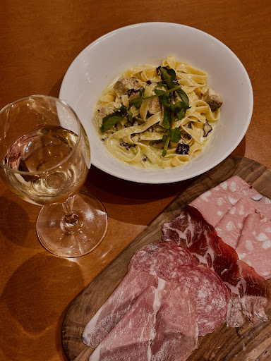 Read moreThis spot feels like a little slice of Europe! ✨ The charcuterie board is next-level—prosciutto, salami, and Italian sausage paired with white wine for the ultimate flavor combo. 🍷 Then came the creamy chicken fettuccine—rich, velvety sauce, perfectly al dente pasta, and tender chicken in every bite. Pure comfort! 📍 Ideal for date nights or a cozy catch-up with friends, and trust me, the vibes here are ✨...