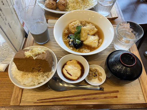 Went there for lunch, ordered their special lunch teishoku menu and the chicken karaage teishoku. Yes, real chicken, even in their special menu they put pork in the soup, so this is NOT vege / vegan restaurant. But believe me when I said they know what they're doing with their tofu... choose any menu with lots of tofu and you will find your meal very satisfying, very fulfilling and your body will be happy about it too 😉 Worth mentioning their soy milk panna cotta with coffee is very, very delicious. I don't know how, but they totally nailed it, you won't know it's...
