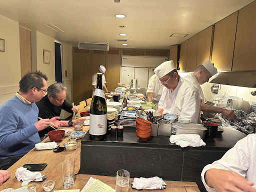 Read moreInformal (Ties off) business dinner for 6 on a Tuesday night. Small basement restaurant has a loyal following and every seat was taken. The square table at the of the bar is perfect for our group. A wonderful multi course a la carte menu included sashimi, salad, egg pudding, grilled eel, fugu pufferfish, ramen bowl, rice bowl and delicious strawberry dessert. Accompanied by various sakes (see pictures). 4 chefs work at the kitchen bar to prepare everything. Cosy, high quality and informal. Recommended. David...