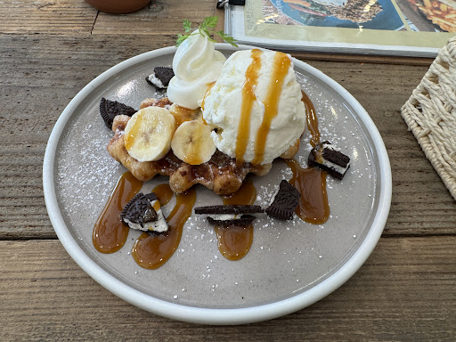 カフェを探していてネットで偶然見かけました。 雰囲気はとても素敵だけど信じていいものか……と、口コミを見ながらおそるおそる入ってみましたが、百聞は一見にしかずとはよく言ったものですね。あまり誇張表現すると不信感を与えてしまうものですが、とても素晴らしかったです。 お客さんは比較的ファミリーが多めといった感じでしたかね。しかし親御さんが少し苦労している時にさり気なく手助けしていたり、小さなお子さんにも対応していましたが声も配慮していて好感を持てました。 お昼よりは少し早めの時間でしたがお客さんは多すぎず少なすぎず。されど窮屈感はなく自然とリラックスでき、店員さんも過干渉することなくしかし温かな対応でした。何より一つ一つの席が適度な距離感でしかし雰囲気を大切にされていて、個としても組としても理想的な空間でした。 私は紅茶とケーキが好きですので、同じような拘りを持つ方には向かないかもしれません。ちなみに私はいちごのクロッフルとレモンスカッシュを頼みました。クロッフルはサクサクもちもちでいちごの酸味といいバランスで、レモンスカッシュも容器が可愛く味も美味しく、期待以上に満足感を得られました。 WiFi……は、なさそうでしたかね。確かめてないですが。コンセントもありましたが勝手に使っていいのかはわかりません。お水はセルフサービスでした。何か作業をするため、というよりは息抜きをするため、を目的とするならばオススメです。口コミで車の音やら云々見ましたが、そんなに聞こえませんでしたし気にもならなかったですね。個人の感想ですが。 駅からも近いので機会があればぜひまた行きたいと思います。クロッフル美味しかっ...