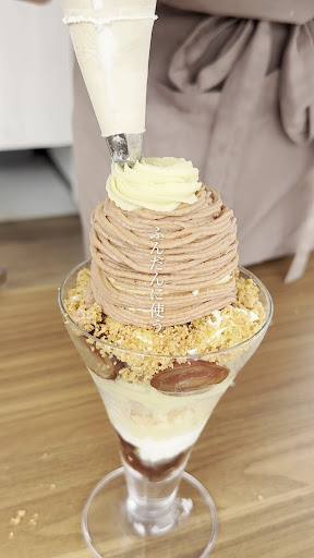 「栗とお芋のモンブランパフェ」は秋感全開で、ほっくり甘い栗とお芋がどんどん重なっていく感じが贅沢。そこにほうじ茶のほろ苦さとキャラメルのコクが加わって、甘さだけじゃない深みが楽しめるのがポイント🔥 食感と風味の層をちょっとずつ崩しながら食べるのが最高だった。
