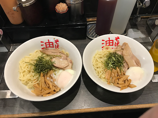 Review from May 2023. Big and medium portion of the Abura Soba are the same price at 750yen, so go for the big one if you're feeling hungry and don't forget to add an egg topping! Food is ordered at the ordering machine at the entrance. The table has vinegar and various sauces, so add whatever you like. I personally like the vinegar, spicy garlic sauce, sesame seeds and a bit of chili flakes on the noodles, then mix it well... a simple yet tasty bowl of noodle! Water is free flow at the counter. The seats are very tight and narrow though especially at...