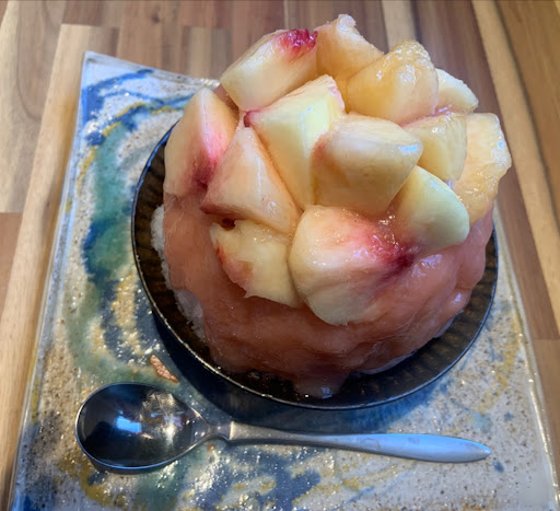 【良かった点】 ①かき氷がしっかり美味しくボリューミー! ・桃ぜんかい(¥2,500)を注文しました。 トッピングに一口大の桃がたっぷり使用されているだけでなく、かき氷の中にもたっぷり使用されています。 おそらくトッピングの方の桃は、特に甘い部分を使用しているのか程よい柔らかさとしっかりとした甘さを感じます。中に使用している桃は、トッピングより見栄えが劣るものを使用していると思いますが、味はしっかりと美味しいです。 トッピングの桃よりはさっぱりとした味とほんの少し硬めの食感ですが、トッピングの桃と氷の食感とのアクセントになっていて寧ろ良かったです。