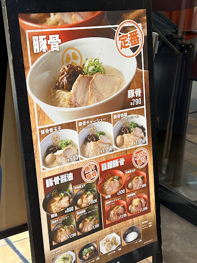 Compact, modern noodle joint in a station, serving tonkotsu ramen, made with pork-bone broth.