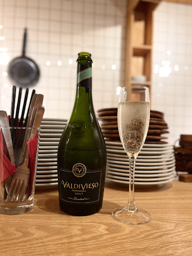まずは、スパークリングで乾杯✨ グラスワインが豊富で、めちゃ安いのよね。 まさかの490円!! 良心的すぎない?