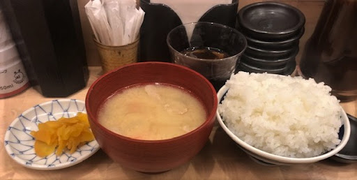 First of all, miso soup appears (it's pork soup)