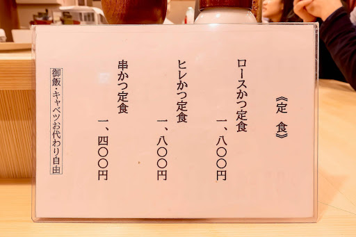 メインメニューは、 ロースかつ定食 1,800円 ヒレかつ定食 1,800円 串かつ定食 1,400円です。 初めての来店で迷っているなら、まずはロースかつ定食がオススメです!