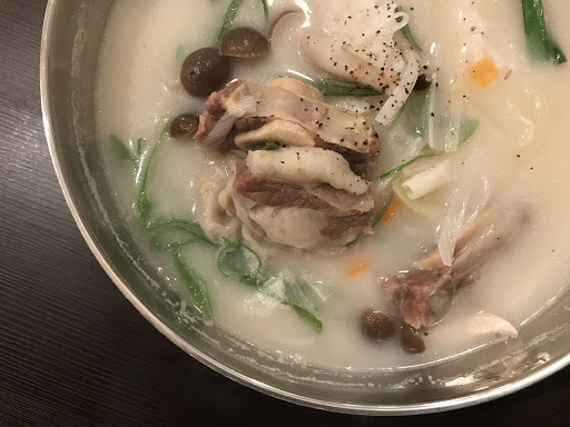 I was craving for samgyetan but I was disappointed to know they only serve nabe (hotpot) for at least two people (unless you are willing to eat and pay for one serving). But the staff recommended me a different dish which is exactly what I was looking for, lightly-seasoned but savory soup - komtan soup with rice. The free side dish tasted great as well. I hope they can serve other dishes for only one person (half-chicken samgyetan etc.). Prices were reasonable and the service was...