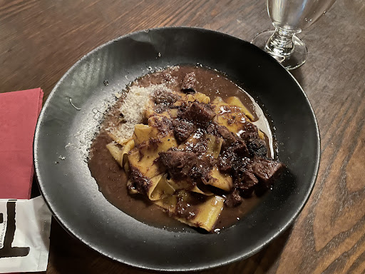 Read moreA very romantic spot for your Partner to bring you to. The spiraling stairs going down has a very modern feel- made us think we were entering a chic night club. The interior had a very speakeasy feel. Even though we went during the day, we felt like it was a relaxing evening that we were enjoying. We both chose the beef cheeks pasta. It was my first time eating beef cheeks and wow was it delicious. The meat was so tender it was like a stew. Will...