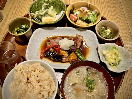 If there’s such thing as a perfect lunch set, that would be their stamina teishoku. It has everything I like in a lunch set. It has medium rare beef in Japanese sauce. Included in the set are salad, tonjiru miso soup, tempura vegetables, pickled cabbage, plus 3 more side dishes. It also comes with rice of your choice. Their karaage is also juicy and crunchy. They also have tofu in...