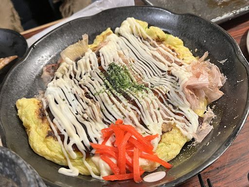 Okonomiyaki - That was a joke. Used eggs instead of flour and proper ingredient like squids and cabbage etc. Just didn't taste right now the sauce is fine cause you can buy okonomiyaki sauce from anywhere
