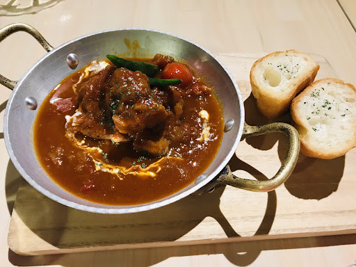 次にメニューブックにておすすめされていたので注文したバターチキンカレーは確かに不味くは無いが、特別旨い訳でも無い感じ。ちょっと美味しいかな程度。米はもっと硬く炊くか、雪若丸などの粒感がしっかりしている品種の米を選ぶと良い。それより何よりショックだったのは40分待たされた "チキン" カレーの "チキン" がなんと手羽元1本だったこと。チキンレッグが1本ではなく、なんと原価数十円の手羽元がたった1本。。。これでお値段1,150円。私の場合、ライスを大盛りにしたので1,310円。。。仮に小ぶりだとしてもチキンレッグ1本ならまぁ妥当かなと思うが、これでは客を舐めてるとしか思えない。ちなみにここに飲み物を頼むと360円追加で1,670円にもなってしまう。遅くて高い。つまりコスパ最悪ということだ。