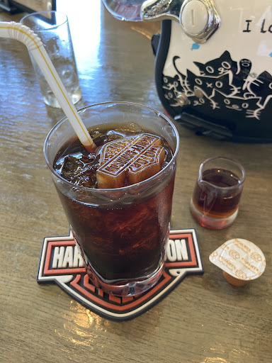 Read moreGoogleマップで見つけて、初めて訪問‼️ バイク乗りでなくても癒される空間と、 オーナーご夫妻の温かい雰囲気に包まれる様な 素敵なお店でした❗️ 常連さんが多い様ですが、初訪問の私にも ママさんが気さくに話しかけてくださり、 お店の事など色々教えてくれました(笑) ハンバーグディナーセットを頂きました。 39年間、変わらない味とボードに書いてありましたが、熟成された美味しい味わいでした😁 オーナーがハーレー乗りとのことで、 食後のアイスコーヒーのコースターがハーレー物で、なんと氷までハーレー型氷でした🤩 メニューも豊富なので、今度はナポリタンを食べに...