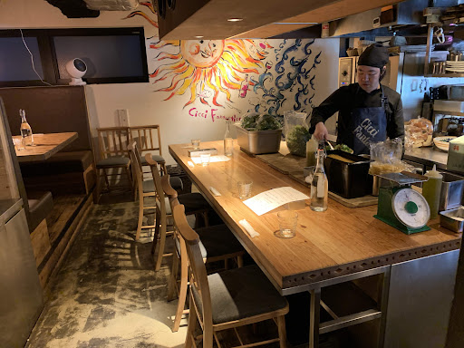 Read moreCame here for weekday lunch on my own. Came at around 1145 and the place wasn't so busy, atmosphere at first glance is good and place has modern design. They sat me at the counter which is basically in the kitchen and right behind me was the wash up area which could be heard as dishes were placed in and washed. From 12 place got busy and they started to fill up the seats which were very close to each other. The food was decent and for 1080 yen it includes all you can eat appetizers (which were good), coffee and tea plus main. I think it was ok and concept/ taste were good just the way the cram in people makes it...