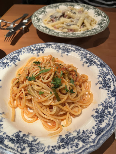 ---再訪---2025.10.中旬 レイクタウンまで家族でお出かけをした帰り。 すごーく中途半端な時間にフライドポテトを食べた子どもたちは「お腹空いてなーい」と言う始末。かと言って帰ってから夕飯を準備するのも時間的にママは大変そう。「どこかでご飯食べて帰ろう」となったわけだが、我が家は最近イタリアンの"アタリ"を引いていない。そこで本能的に思い出したのがココ!笑 相変わらず20時過ぎでも満席です。お店の方の為にも席の問い合わせはしておいた方が良いと思います。さて今回は… ◆真鯛のカルパッチョ ◇芝海老のフリット ◆舞茸のフリット ◇ピッツァマルゲリータ ◆リングイネペスカトーレ ◇カタラーナ 「お腹いっぱい」と言っていた子どもたちがあっという間にカルパッチョと芝海老のフリットをたいらげる 笑 舞茸のフリットのボリュームに大満足でした。 マルゲリータは絶対的な美味しさ。ピッツェリアの出来立てピッツァって絶対美味しいですよね☆ ペスカトーレも魚介の出汁がしっかり効いていて美味でした。 小麦粉を使わないチョコレートケーキが完売してまして、カタラーナを注文。4歳児がひと口食べて「もう少し欲しい…もう少し欲しい」と結局半分持ってかれました...